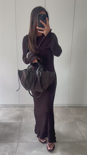 Robe longue marron en maille laçage décolleté à l’avant ou arrière
